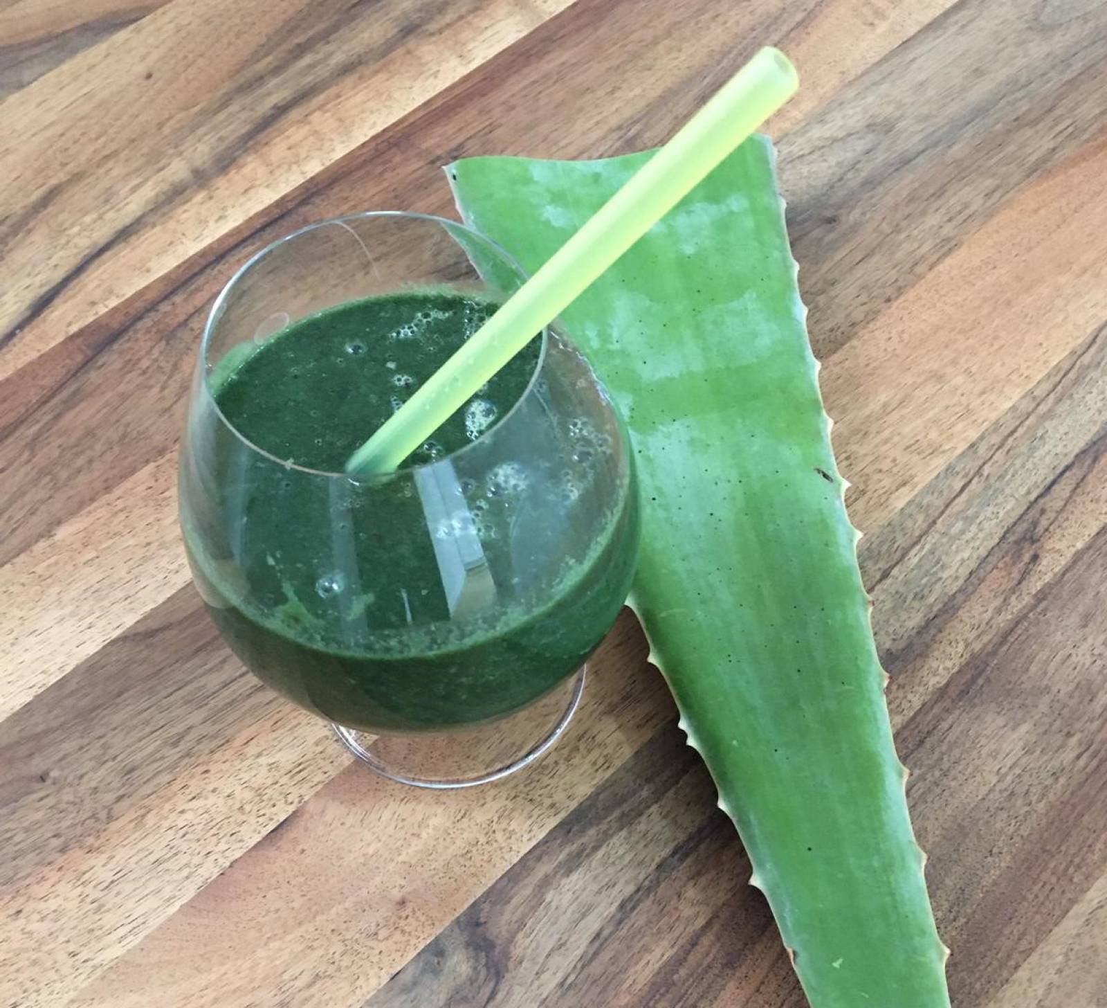 Volim smoothi “zeleni ananas“ jer daje puninu okusa od kiselog preko ljutkastog do slatkog okusa. Svojim vitaminima, mineralima, enzimima i klorofilom podrška je imunološkom sustavu i blagotvoran je za probavu. Prah moringe i spriruline možete naći u dućanima zdrave hrane. Ako ih do sada niste koristili preporuka je krenuti s malim količina (1/8-1/4 male žličice) pa postepeno povećavati. List aloe vere operite, odrežite komad širine cca 2 cm, odstranite zeleni dio (filetirajte ga) i za smoothi koristite samo sluzavi dio bez primjesa zelenog dijela lista.